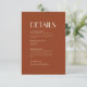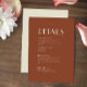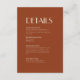 Im Herbst diesen Deko Boho | Roste Hochzeitsdetails Umschließung Karte schafft ein einfaches und vielseitiges rustikales Wüste oder Land Western Thema für Ihre Hochzeitsfeier. Die Farbgebung in Orange, Terrakotta, Rost, Kupfer und das minimalistisch schlichte beige-farbene Design ermöglichen einen klassischen Mix und passen sich den anderen Farben dieser Herbstkollektion an, um ein eigenes Farbschema zu kreieren. Fügen Sie weitere Details auf der Rückseite mit weiteren Informationen für Ihre Gäste hinzu.