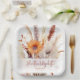 Mit diesen Tellern des Boho Floral Wedding Paper können Sie Ihre Hochzeitsreise mit Eleganz genießen. Diese Teller mit einem sanften, floralen Aquarelldesign in reichen Herbsttönen unterstreichen die Namen der Braut und des Bräutigams sowie die Hochzeitslocation und das Datum in einer schönen Mischung aus eleganter Schrift und moderner Typografie. Diese femininen und funktionalen Teller sind ideal für Hochzeiten im Herbst und böhmische Blumenthemen und eignen sich ideal für Empfänge, Desserttische oder lässige Ansammlungen. Eine charmante Ergänzung zu Ihrer Hochzeitsfeier, die saisonale Schönheit mit Bequemlichkeit verbindet.