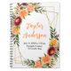 This fun and whimsical notebook features watercolor burgundy red and orange flowers with foliage on a gold geometric frame. The text combines handwritten script and serif fonts for a stylish and modern look. It can be personalized with your baby's birth stats, such as name, size, date and time of birth, or if you would like to give it as a shower gift you are able to edit and remove text.