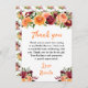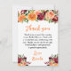 Autumn Burgundy and Orange Floral Bridal Shower Dankeskarte