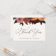 Die "Dankeschön"-Karte bietet eine Kaskade mit Blütenfarben, Bordeaux- und Orangenfloralen für ein Herbstthema. Personalisieren Sie Ihre Daten oder klicken Sie auf "Weitere Anpassungen vornehmen", um Schriftart Stile, Größe und Farben zu bearbeiten. Kann auch auf der Rückseite mit Ihrer eigenen getippten Nachricht personalisiert werden oder löschen Sie diesen Platz, um Ihr eigenes Dankeschön zu handschreiben.