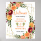 Autumn Burgundy Orange Floral Wedding Welcome Sign Poster