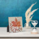 Minimal decorative cooper vine autumn leaf ina vineage cooper, yellow, orange and red tones, on a warm background with fallen leaves.