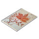 Minimal decorative cooper vine autumn leaf ina vineage cooper, yellow, orange and red tones, on a warm background with fallen leaves.
