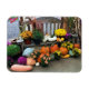 Eine schöne Ausstellung von Blume, Kürbissen und Squash in einem Garten. Sehr hübsche Herbstdekoration!