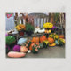 Eine schöne Ausstellung von Blume, Kürbissen und Squash in einem Garten. Sehr hübsche Herbstdekoration!
