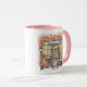 A romantic autumn café storefront surrounded with pastel flowers and fall leaves, displaying a warm bookshop interior and a small outdoor table with coffee. Perfect gift mug for readers, coffee lovers, librarians, writers, and anyone who adores cozy fall aesthetics.