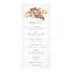 This wedding reception menu card features a stunning combination of autumn flowers and leaves in terracotta and beige hues that adorn the upper part of the front, surrounded by a white border for a truly classic look. On the back of the card, guests will find another beautiful bouquet of fall flowers, this time on a terracotta clay background, framed by a white border to complete the picture. This menu card is sure to add a touch of elegance and beauty to any wedding reception. The cover has been designed using some assets from Freepik.com