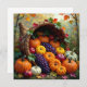 A pretty blank card with a cornucopia full of pumpkins, grapes, apples and surrounded by Fall leaves.