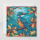 Eine Flachkarte mit einem Eisvogel im Herbst im Buntglasstil.