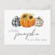 Ein kleiner Kürbis ist unterwegs! Feiern Sie die werdende Mutter mit einer Herbst-Babydusche einladen. Drei niedliche Kürbis in Schwarz-Weiß-Gingham und Leopardendruck verleihen der Einladung etwas Lustik und rustikalen Charme. Sonnenblumen schmücken den orangefarbenen Kürbis. Die Rückseite ist mit einer realistischen Details versehen. Dies ist die perfekte geschlechtsneutrale Herbstdusche-Einladung.