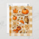 Send a touch of autumn warmth with this cozy postcard featuring charming hand-drawn illustrations of an owl, pumpkin, candle, and fall leaves — all set against a soft gingham background. Perfect for fall greetings, Thanksgiving wishes, or simply spreading cozy seasonal cheer.