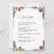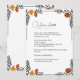 Orange und Schwarz mit Blätter und Blume. Ein farbenfrohes und lebendiges Design mit fallendem Laub, wie Blätter und Kürbissen. Die Einladung kann spielerisch und festlich sein.