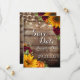 Autumn Pumpkin Rustic Save the Date Card. Mit unserer rustikalen Hochzeitskarte kündigen Sie Ihre Verlobung stilvoll an. Das braune Holzgelände mit viel Grün, gelben Sonnenblumen, Kürbissen und bordeauxfarbenen Rose.