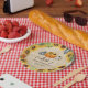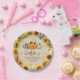 Das Design besteht aus drei zauberhaften Kürbis in Orange, Schwarz und Weiß, und Leopardendruck auf einem Bretterprint. Der orangefarbene Kürbis ist mit hübschen gelben Sonnenblumen geschmückt. Sonnenblumen und Kürbisse umkreisen die Außenkante der Platte. Der Name der werdenden Mutter in einer handgeschriebenen kursiven Typografie wird zusammen mit "Baby Sprinkle" und dem Datum vorgestellt.