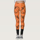 Ein paar Kürbis, perfekt für den Herbst, in schwarzer Kontur, auf einem orangefarbenen Denim-Design mit einem schwarzen Streifen am Boden der Leggings für Halloween-Farbspass!