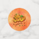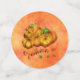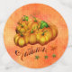 Moderne Kürbisse und grüne Glitzer-Sterne mit Textherbst über orangefarbenem Hintergrund