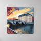 Autumn Riverside European City Illustration Art Leinwanddruck