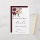 Dieses Brautparty "Guess How many Corks (Muscheln) Are In The Jar" bietet eine Aquarellbouquet aus Dahlien, Rose aus dem Garten und Birne in Bordeaux, Maroon, Rosa in Rot über Blätter. Klicken Sie auf die SCHALTFLÄCHE BLAUE DESIGN TOOL, um eine erweiterte Anpassung dieses Designs zu erhalten. Matching-Elemente sind ebenfalls verfügbar.