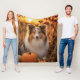 Genießen Sie den rustikalen Charme des Herbstes mit unserer atemberaubenden Decke, die einen zauberhaften Shetland Sheepdog auf einem Erntefeld als die Sets der Sonne im Hintergrund zeigt.