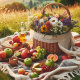 Ein lebendiges Design mit einem Eichhörnchen inmitten eines bunten Herbstwaldes mit fallenden Blätter und verstreuten Eichhörnchen, das an die gemütliche Essenz des Herbstes erinnert.