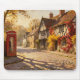 This digital artwork features a quaint English village bathed in the warm, golden hues of autumn. A traditional red telephone box stands on the corner, slightly weathered, adding a touch of classic English charm.