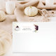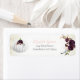 Schicken Sie diese elegante, herbstliche, florale, weiße Kürbiskugel-Rücksendeadresse. Kürbis sitzt links mit Blumenfarben von lila und pinken, darunter eine grün-weiße Feder für eine moderne Vintage, böhmische Atmosphäre. Vorlagen.