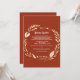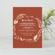 Ein Kranz aus Blätter und Blume auf einem goldenen Hintergrund. Ein farbenfrohes und lebendiges Design mit fallendem Laub, wie Blätter und Kürbissen. Die Einladung kann spielerisch und festlich sein.
