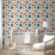 Add a touch of warmth and authenticity to your home with this unique design! This wallpaper combines the charm of watercolor flowers with the spirit of elegant earth tones, where deep blue blossoms are scattered with warm yellow and reddish-orange to create a captivating tableau.
