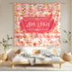 Das hübsche Aquarellmuster wird durch das Kaskadieren von rosa und orangefarbenen Blume und Blättern auf einem Streifen in Rosa und Weiß bedeckt.