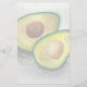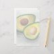 Aquarellmalerei eines frischen grünen Avocado in Scheiben geschnitten. Grauer und blauer Hintergrund.
