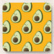 Ein Avocadomuster im Stil eines Cartoon auf einem orangefarbenen Hintergrund. Originelles Design.