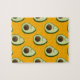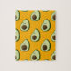 Ein Avocadomuster im Stil eines Cartoon auf einem orangefarbenen Hintergrund. Originelles Design.