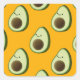 Ein Avocadomuster im Stil eines Cartoon auf einem orangefarbenen Hintergrund. Originelles Design.