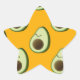 Ein Avocadomuster im Stil eines Cartoon auf einem orangefarbenen Hintergrund. Originelles Design.