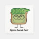 Hipsteravocadotoast, der irgendwo sucht, um indie Musik zu hören. Nur Bio Avocados für diesen Hipstertoast. Danke für das Betrachten des glücklichen Nahrungsmittelentwurfs!