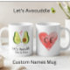 Machen Sie sich bereit, die Welt Ihres Partners mit diesem niedlichen "Lass’s Avocuddle" Paar Tasse zu sichern! Mit zwei lächelnden Avocado-halben, die für einander gemacht sind, und personalisierten Namen, ist es das ideale Geschenk für Jubiläen, Valentinstag, oder einfach nur, weil. Schnuppern, trinken Sie Ihr Lieblingsgetränk und ließ den Avo-Liebe-Glanz!