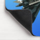 Eine Maus-Matte für einen Flieger, mit einem Foto des vulkanischen Delta Wing Strategischen Bombers im Flug, gegen einen Farbverlauf hell bis takisblau Hintergrund, und Sie können es mit jedem Namen personalisieren.