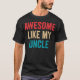 Show your appreciation and admiration with this "Awesome Like My Uncle" graphic tee. With a playful and fun design, this shirt is perfect for everyday wear. Made with soft and comfortable fabric, it's sure to become a favorite in any wardrobe.