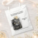 A fierce looking dark gray and black pussy cat wearing a leather hat with steampunk brass on it. A bronze feather tops the cock-eyed hat. This beautiful feline is wearing a golden or amber lensed monocle giving one eye a bronze tone, Around the cats neck hangs a brass trinket of some kind adding to the overall Steampunk attire. The bags serve as charming packaging for party favors, such as small steampunk goodies, candies, trinkets, or personalized items. There is a small area for your advertising at the bottom of the bag, Two lines for the event name and an area to say thank you