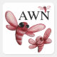 Autism Women's Network Classic Logo-Aufkleber. Bild ist drei Hand gezeichnet lächelnden Libellen in Rosa und Rot; zwischen ihnen die schwarzen Großbuchstaben AWN.