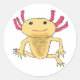 Eine Hand gezeichnet bunt axolotl gegenüber dem Betrachter. Hellrote, lila Frontgilden, blaue Augen, gelber Körper - gefangen in der Mitte des Schwimmversuchs. Ein lustiges Bild für axolotl Fans und - Fans von axolotls.