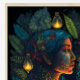Erleben Sie die mystische Essenz Ayahuascas mit "Aya", einem digital illustrierten Wandteppich, der von Naturwunder übersät ist. Im Herzen liegt das ruhige Gesicht einer südamerikanischen Frau, ihr Blick voller alter Weisheit. Sie verkörpert die Bindung der Vorfahren zwischen den Völkern des Amazonas und dieser heiligen Pflanze, die wegen ihrer spirituellen Heilung verehrt wird. Das üppige tropische Blattwerk umhüllt sie in lebhaften grünen Farbtönen, die von erdigen Braunen betont werden, die die biologische Vielfalt der Regenwälder widerspiegeln, die Ayahuasca als Zuhause bezeichnet. Delikate Farne, weitläufige Pflanze und gewellte Reben führen Sie in die Tiefe des Dschungels. Pop orange und gelbe Flora strahlen Wärme und Leben aus. Drei Laternen, die das mystische Ambiente noch verstärken, werfen ein weiches Licht über die Szene, ihre flackernden Lichter tanzen mit Schatten. Auf der rechten Seite steht ein Raucher-Cauldron, der auf die zeremoniellen Traditionen rund um Ayahuasca verweist. "Aya" vereint wunderbar die reiche natürliche Essenz und kulturelle Spiritualität dieser mächtigen Medizin. Zeigen Sie es auf Ihrer Zuhause, um zu einem ruhigen, heiligen Ort, tief in der grünen Umarmung des Amazonas, befördert zu werden. Ein evokatives Stück, das sicher Introspektion auslöst.