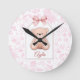 Ayla | Benutzerdefiniertes rosa Teddy-Bär-Kinderzi Runde Wanduhr