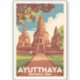 Ayutthaya Retro Vektor Reise Design. Die Ruinen der Altstadt bilden heute den Ayutthaya Historical Park, eine archäologische Stätte, die Paläste, buddhistische Tempel, Klöster und Statuen enthält.