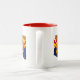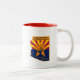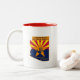 Tasse des weißen Kaffees hat rotes Innen- und farbenreiches AZ DCS-Logo auf Front und Rückseite der Tasse.