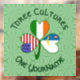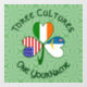Dieses Kleeblatt weist in jedem Blatt eine andere Flagge auf. Die Flaggen der Azoren, Irlands und der USA sind alle mit dabei. Design geschaffen, um St. Patrick's Day, 4. Juli, und Azorean Feiertage zu feiern. Der Hintergrund ist von hellgrünen quadratischen Quadraten. Worte oben lesen, DREI KULTUREN. Die Worte unten lesen EINEN IHREN NAMEN. Wörter zeigen dunkelgrün, keltischer Stil, kreisförmige Buchstaben. Geben Sie Ihren Namen an den richtigen Ort für die Personalisierung. Um ein individuelles Geschenk zu erstellen, fügen Sie den Namen eines anderen hinzu.