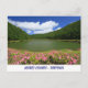 Azoren Inseln Postkarte, zeigt eine der Empadas Seen, mit Azaleen im Vordergrund. Sao Miguel Insel, Azoren, Portugal.
