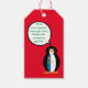 Frau Penguin, die auf den Azoren reiste, erhielt eine Weste der weißen, blauen, goldenen und roten Flagge der Azoren. Sie trägt es auf diesen Geschenketiketten. Die Talk-Blase erlaubt es, Worte in ihren Mund zu stecken, um das Geschenketikett zu personalisieren, um es zu etwas Besonderem zu machen. Ändern Sie die Hintergrundfarbe in Kompliment oder in Übereinstimmung mit einem Party-Thema.