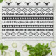 Aztec gemischte Motive in schwarzem Detail auf weißem Hintergrund. V = Vertikales Muster.